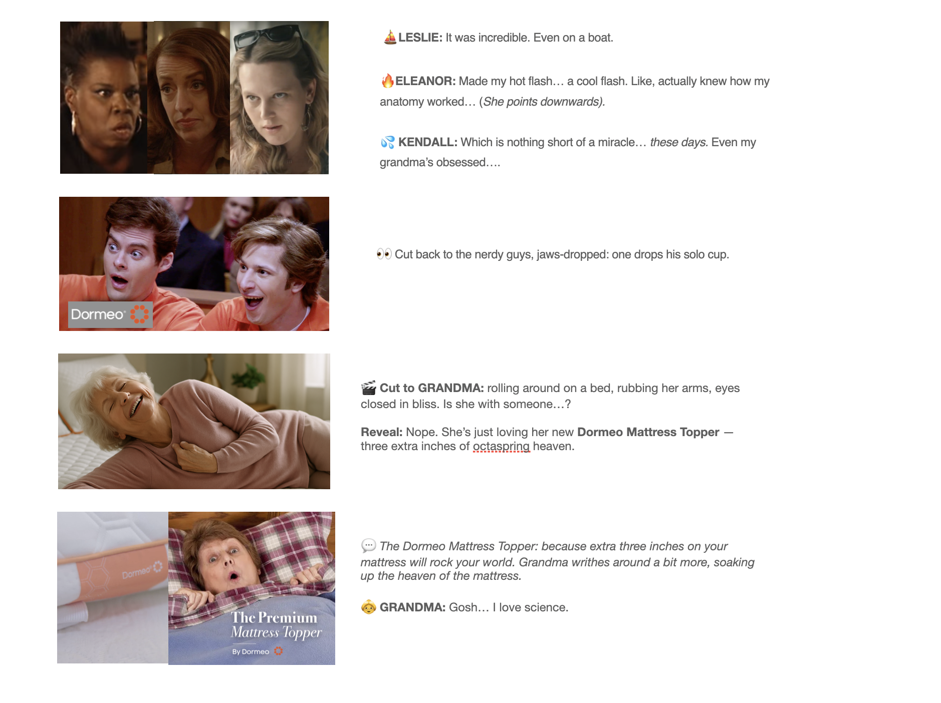 Below are several screenshots of an unreleased ad I wrote for Dormeo.